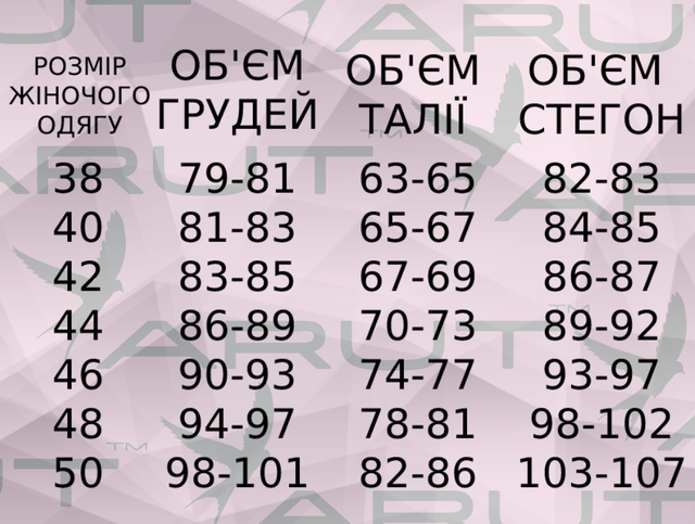 При виборі розміру, будь ласка, зверніть увагу на розмірну таблицю: