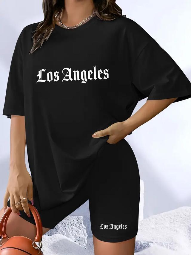 Жіночий літній костюм: футболка вільного крою та велосипедки Los Angeles